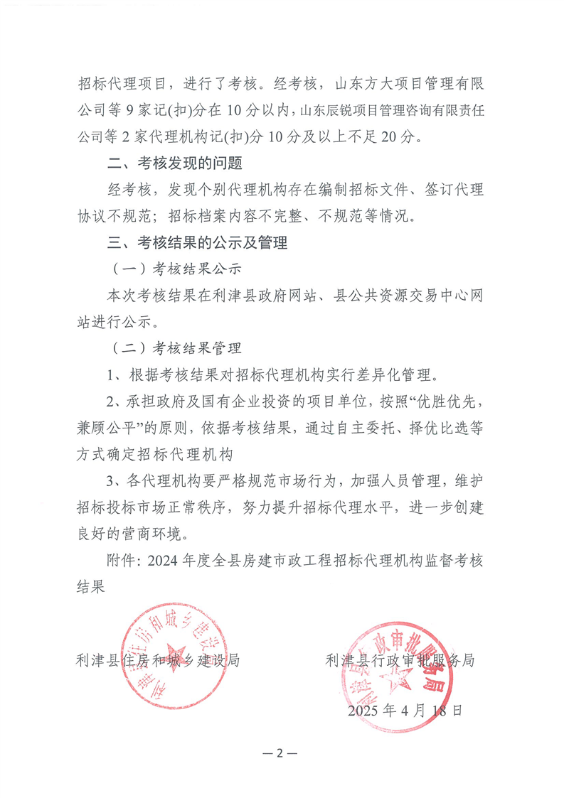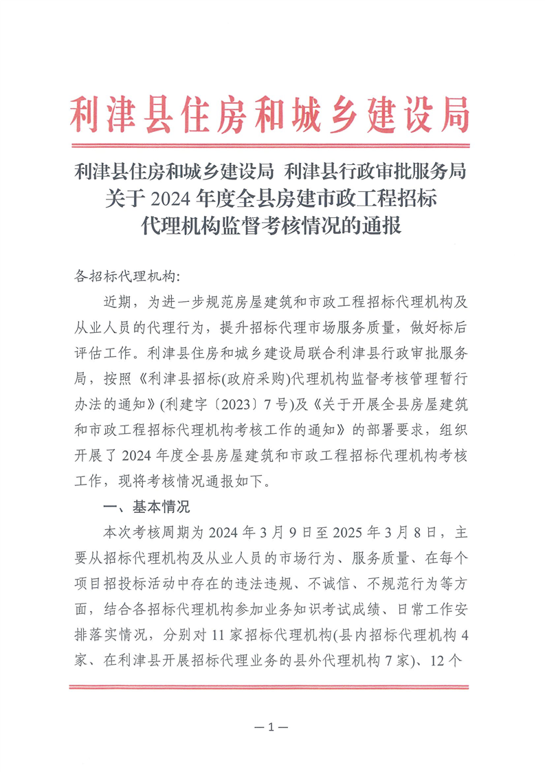 关于2024年度全县房建市政工程招标代理机构监督考核情况的通报