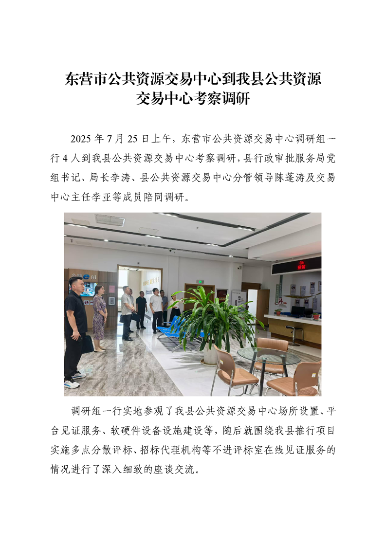 东营市公共资源交易中心到我县公共资源交易中心考察调研
